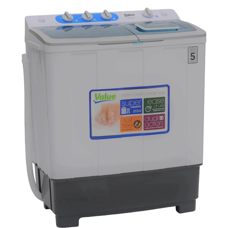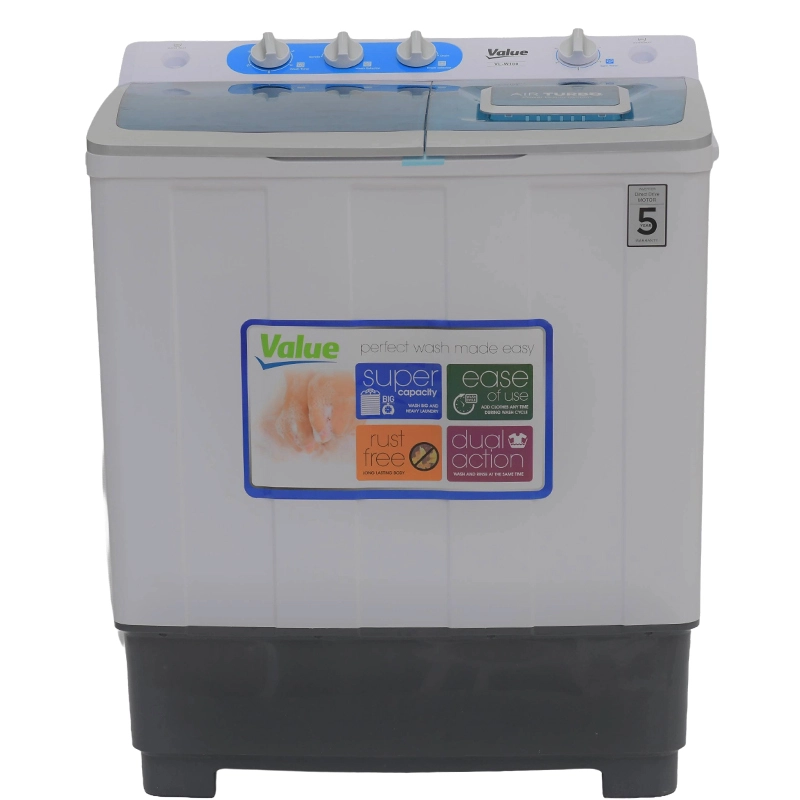 The Value VL-W100 is a compact and efficient washing machine designed for smaller households. With a 10 kg capacity, it offers essential washing functions while maintaining a space-saving design. It features a transparent lid for easy monitoring, a magic cleaning filter for improved water purity, and wind jet dry technology for faster drying. Made from durable new materials, it includes multiple program selections for versatile washing needs.